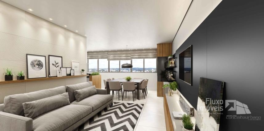 Descrição › ** Pronto para Morar ** Excelente Apartamento de 03 dormitórios de localização central com fácil acesso para todos os pontos da cidade, tem uma vista espetacular por todos os ângulos. O imóvel conta com: suíte , sala de estar, jantar, cozinha , área de serviço, banheiro social, garagem, com porcelanato nas áreas sociais e laminado nas áreas Intimas, rebaixe em gesso em todos os ambientes, isolamento acústico, nas lajes, caixa para automação, espera para split e espera para água quente, churrasqueira.