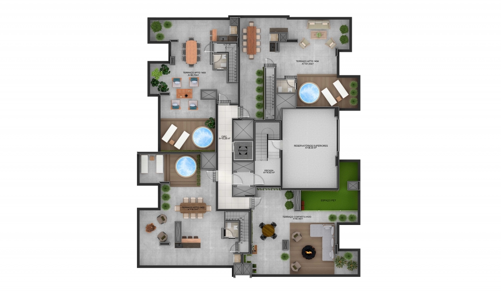 O prédio conta com Terraço na cobertura com ambiente compartilhado para momentos especiais com a família e animais de estimação( espaço Garden e espaço pet), salão de festas mobiliado, medidores individuais de água , luz e gás, espera para painéis fotovoltaicos e câmeras de segurança para área do condomínio, hall de entrada mobiliado, captação da água da chuva, elevador, espera para split, gás central.