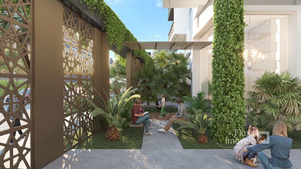 Fachada revestida em pastilhas de porcelana e trama de ladrilhos artesanais, produzidos exclusivamente para o Nature Residencial.