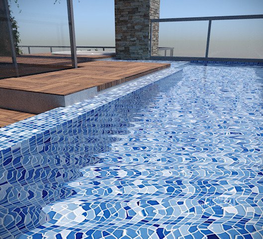 - Piscina adulta aquecida e revestida com deck de madeira
