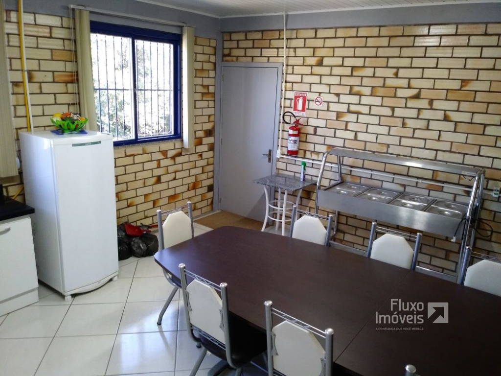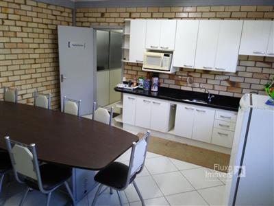 Descrição › ** Excelente pavilhão, com pé direito de 7 metros, sendo na parte superior a recepção, área de escritórios, sala de reunião, cozinha/copa/refeitório, banheiros, sala de arquivo, 3 salas operacionais. Na parte inferior possui duas salas fechadas bem como banheiros/vestiários masculinos e femininos.