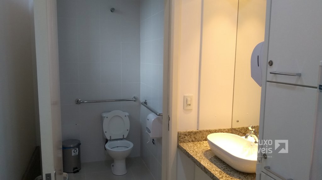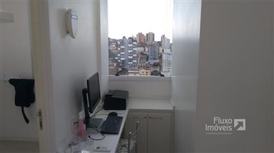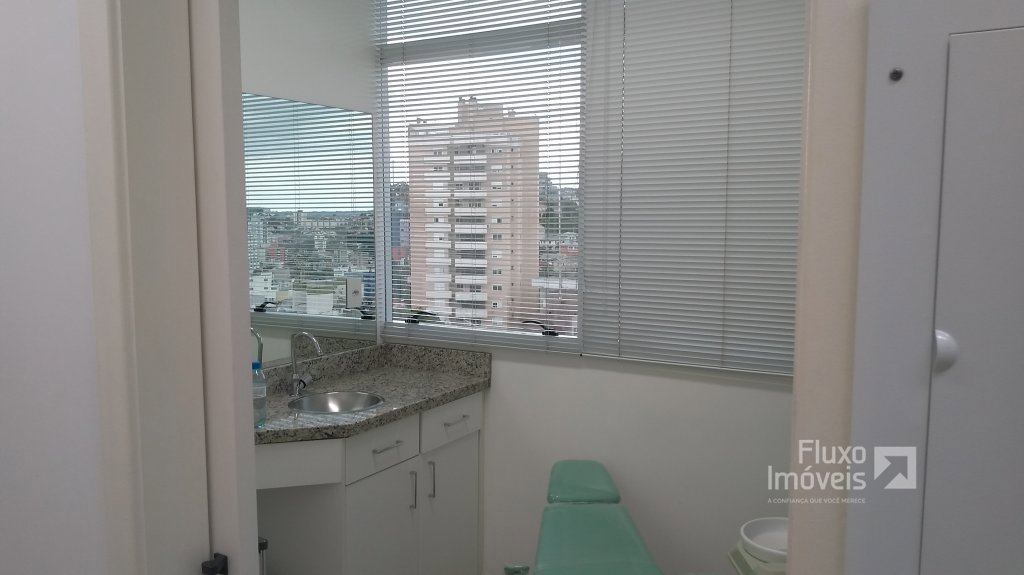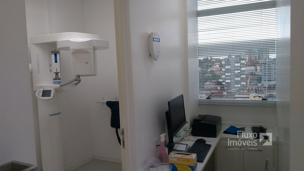 Descrição › ** Ótima Sala Central + Box de Garagem (JÁ LOCADOS) no Ed. Wall Street Business Center - Torre Comercial do Shopping Center Bento Gonçalves, medindo 70,18m² privativos (São 02 salas Unificadas), semi-mobiliada, com recepção, 03 banheiros, lavabo, local para lavagem de materiais, vestiário, escritório, excelente ventilação, iluminação natural, vista panorâmica. Ideal para Clínica Médica ou Odontológica com estrutura especial para exames de Raio X, atendendo todas as normas Sanitárias.