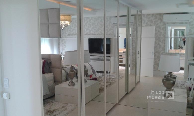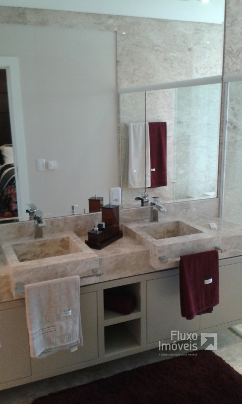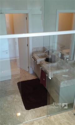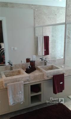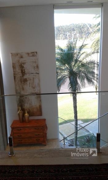 Sobrado de altíssimo padrão classe AAA, com aproximadamente 900 m², FINAMENTE MOBILIADO E DECORADO, projeto arquitetônico inovador e moderno, paisagismo exuberante, piso em mármore travertino, esquadrias em PVC com persianas automatizadas, detalhes em granito, decoração com muito requinte e bom gosto, vista fantástica para o lago, piso aquecido, metais e louças classe A. Construído sobre 02 LOTES, distribuídos em 06 suítes com hidromassagem, sacada com mais de 90m² voltada para o lago com SPA e 02 ambientes, hall de entrada, estar Íntimo, ELEVADOR, living amplo em 04 ambientes com lareira e pé direito duplo, lavabo duplo, espaço gourmet com vista p/ o lago, ampla cozinha em ilha montada, lavanderia, dep. de empregada completa, varanda, piscina de concreto com borda infinita, abrigo para 03 carros!