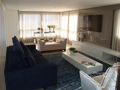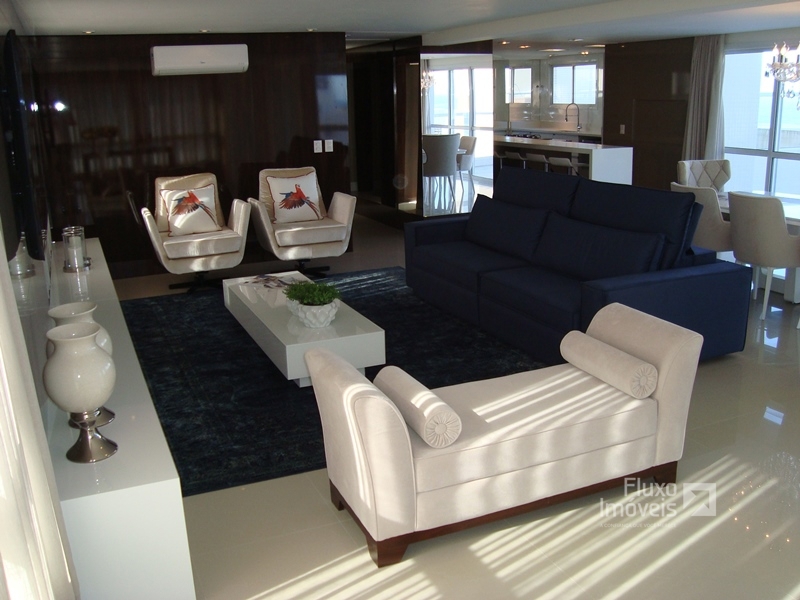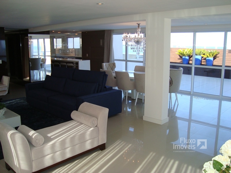 Cobertura com aproximadamente 300m² privativos, totalmente mobiliada e decorada, alto padrão, distribuída em 4 confortáveis suítes sendo 1 máster com hidromassagem, amplo living 3 ambientes onde pode ser integrado ao terraço com deck e piscina privativa, vista fantástica para o mar, lavabo, cozinha americana, churrasqueira, lavanderia, ar condicionado Split, água quente, gás central, hidrômetro individual, rebaixo em gesso, piso porcelanato, vaga p/ 3 carros...
