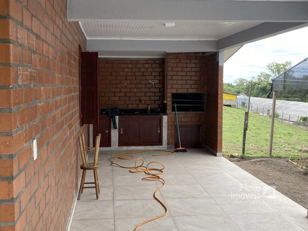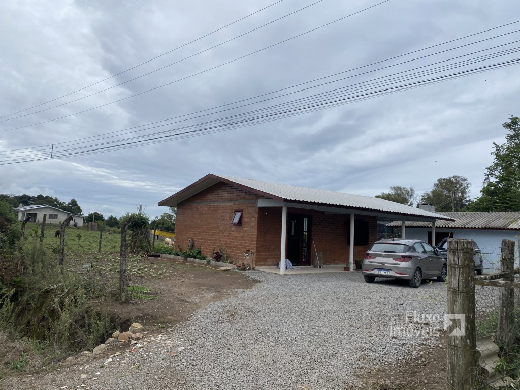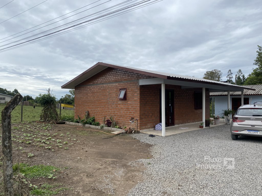 Com sala e cozinha integrada, churrasqueira, dois dormitórios, 1 banheiro e área de servido e garagem, Com canteiro de horta pronta nos fundos.