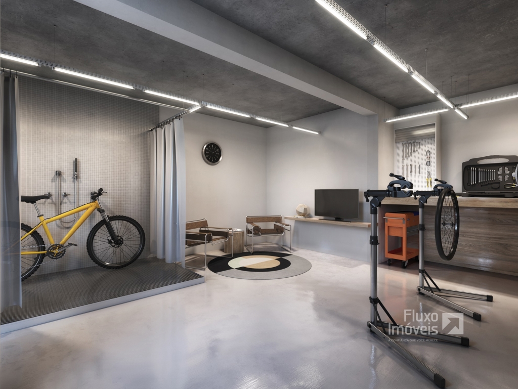 Garagem com espaço para bicicleta.